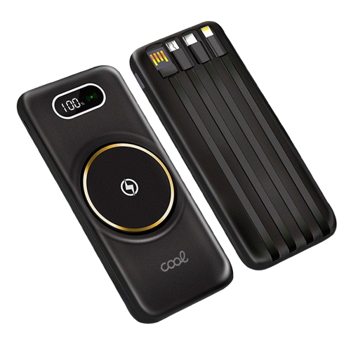 Batería Externa 10.000 mAh COOL + Carga Inalámbrica Qi con 4 conexiones.