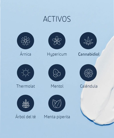 Crema de masaje intensiva con una combinación exclusiva e innovadora de Cannabidiol (CBD) y aceites vegetales.