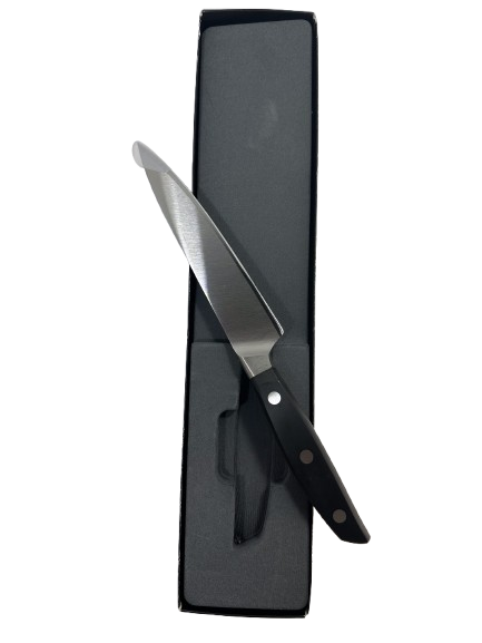 Su principal característica es su media virola, lo que facilita el corte y el afilado. Filo seda.