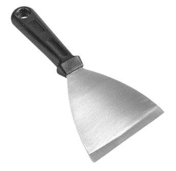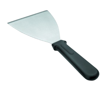 La espátula para planchas está diseñada con una hoja de acero inox en forma triangular resistente a altas temperaturas y robusta.