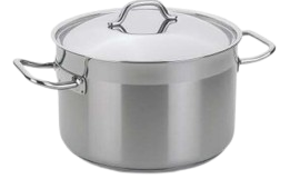 - Toda la pieza (cuerpo, asas y mangos) fabricada en Acero Inoxidable 18/10.
