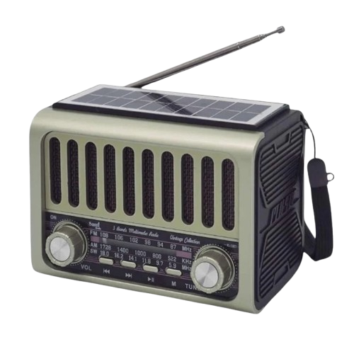 Con su encantador color verde y detalles en negro, esta radio clásica no solo es agradable a la vista sino también al planeta. Su panel solar integrado permite cargar la batería de 800mAh, dándote horas de entretenimiento sin dependencia de la red eléctrica. Además, cuenta con Bluetooth y ranura USB/Micro SD para reproducir música de forma inalámbrica o a través de tus dispositivos de almacenamiento.