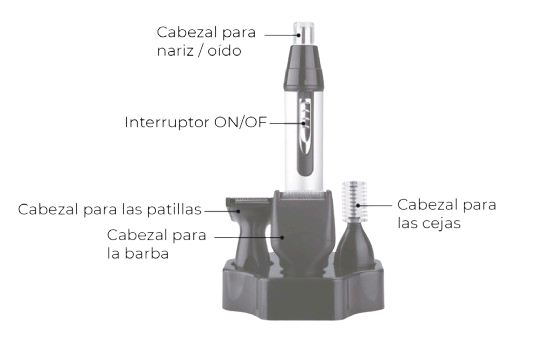 - Eliminación eficaz y segura del vello de la nariz, orejas, patillas, cejas, barba.