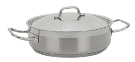 - Toda la pieza (cuerpo, asas y mangos) fabricada en Acero Inoxidable 18/10