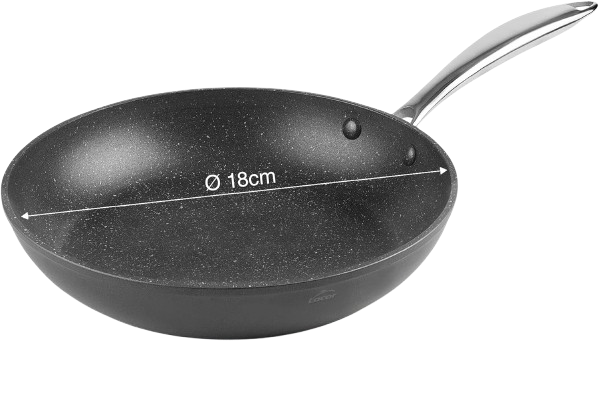 - Sartén muy resistente: El mango es ergonómico de acero inoxidable. La sartén es apilable y es compatible con todas las fuentes de calor, incluida la inducción.