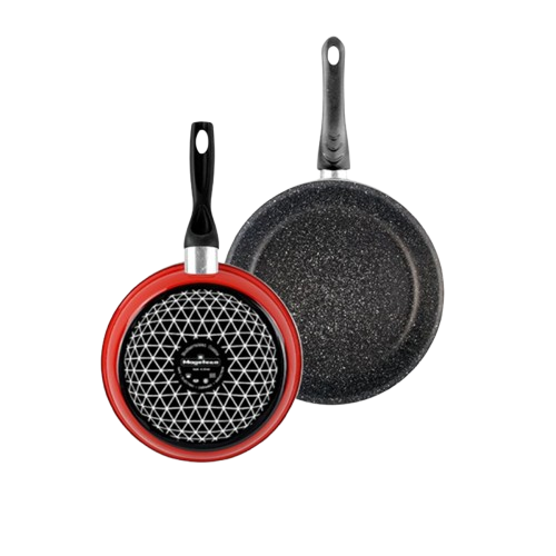 VITRINOR Magefesa Praga - Sartén 28cm de Acero vitrificado Exterior Color Rojo. Antiadherente bicapa Reforzado, Apta para Todo Tipo de cocinas, Especial inducción. 50% de Ahorro energético. Fabricado en acero esmaltado vitrificado a 820º Alto rendimiento energético Recubrimiento antiadherente bicapa reforzado libre de PFOA Dos capas de esmalte exterior, color granate