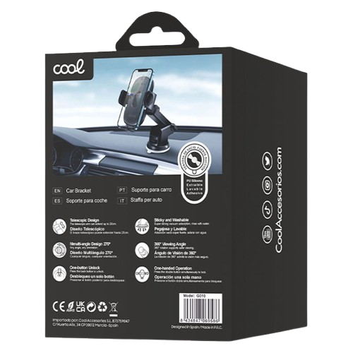 Permite al conductor introducir o extraer el smartphone con una sola mano, con un movimiento rápido y cómodo. Presentación en un blister marca COOL de diseño vanguardista. Código logístico: IDSDVAN